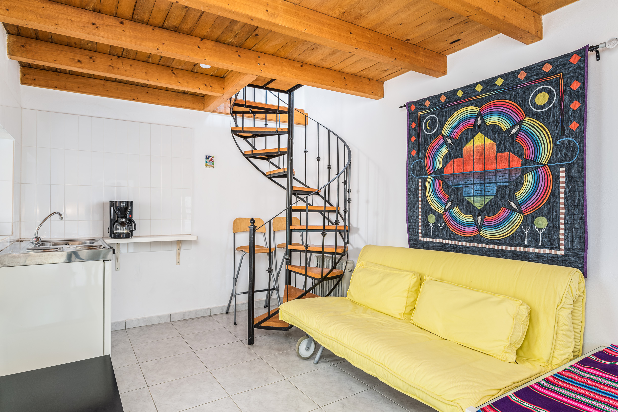 On the ground floor you will find a fully equipped kitchen with an oven, fridge, dishwasher, coffeemaker and toaster as well as a spacious living room with a sofa that can be turned into a bed.